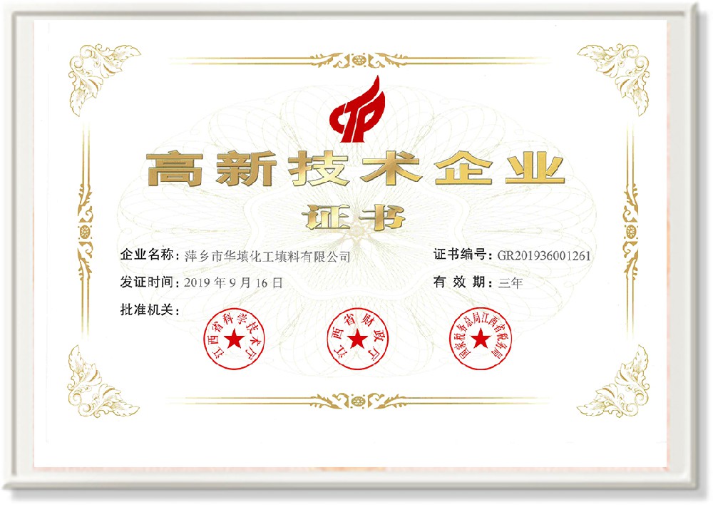 萍鄉(xiāng)市華填化工填料有限公司,位于320國道、109國道、浙贛鐵路、昌金高速公路貫穿其中,交通便利,是江西西部一顆燦爛明珠,創(chuàng)建于20世紀70年代初期,是中國石油天然氣股份有限公司“能源一號網(wǎng)”會員企業(yè)、中國石化物資采購電子商務(wù)網(wǎng)絡(luò)和中國海洋石油總公司采辦業(yè)務(wù)系統(tǒng)成員單位,是上海大學江西材料基因組工程產(chǎn)業(yè)研究院工業(yè)陶瓷產(chǎn)業(yè)創(chuàng)新聯(lián)盟基地,且通過ISO9001:2015質(zhì)量管理體系、ISO14001:2015環(huán)境管理體系、ISO45001:2018職業(yè)健康安全管理體系認證的化工填料生產(chǎn)企業(yè)。公司擁有陶瓷、塑料、金屬填料、催化劑、活性氧化鋁、分子篩等產(chǎn)品生產(chǎn)線,現(xiàn)有固定資產(chǎn)3616萬元,占地面積3.8萬平方米。公司具有悠久的生產(chǎn)歷史、雄厚的技術(shù)力量和先進的生產(chǎn)工藝設(shè)備,可生產(chǎn)工業(yè)瓷球(支撐劑)、陶瓷、金屬、塑料質(zhì)的規(guī)整、散堆化工填料及分子篩、催化劑、生化濾料、活性氧化鋁、石化助劑、活性炭、環(huán)保材料、耐火材料等系列的200多種規(guī)格型號產(chǎn)品。